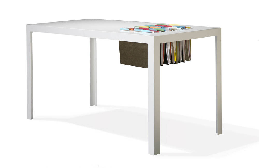 在桌面上開一個口,并向下延伸,這個空間可以用來存放文件,如果在文件上做標注,取放也更加自然、方便,Tovanen 工作室設(shè)計的這款文件桌雖然簡單方便,但卻大大占用了桌面的使用面積,對于不需要處理較多文件的人來說,有些顧此失彼。